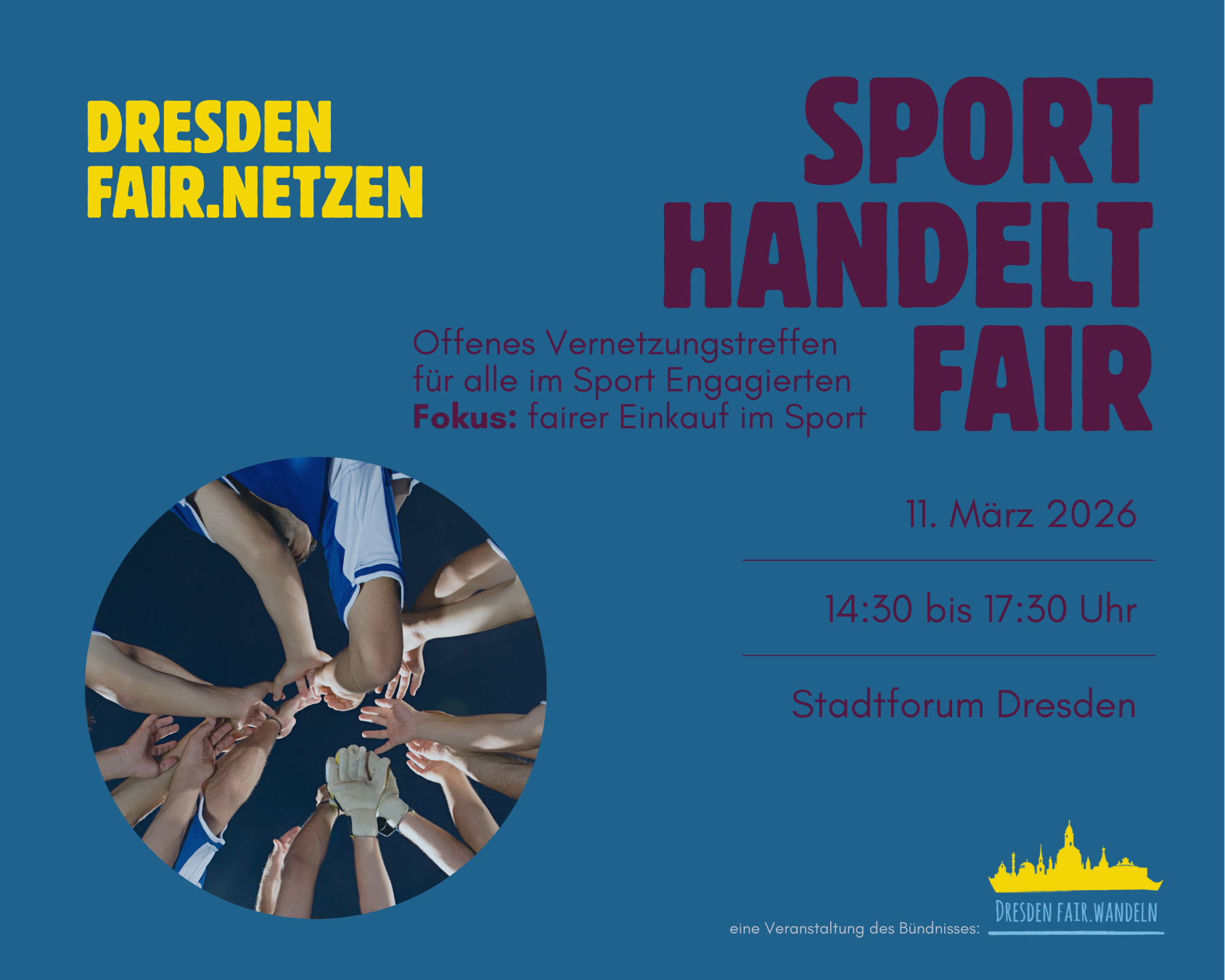Sport ist ein wichtiger Teil des öffentlichen Lebens in Dresden, in dem sich die Landeshauptstadt mit zahlreichen Sportstätten und Angeboten engagiert. Als Fairtrade-Town richten wir in diesem Jahr den Blick insbesondere auf den fairen Einkauf von Sportartikeln. Vom Fußball bis zum Lauf-Shirt – viele Produkte werden oft unter menschenunwürdigen Bedingungen hergestellt. Gemeinsam wollen wir in den Austausch zwischen Sportvereinen, Verwaltung und Fairhandels Akteuren kommen – wie kann Fairplay nicht nur auf dem Spielfeld – sondern auch bei der Beschaffung gelingen?